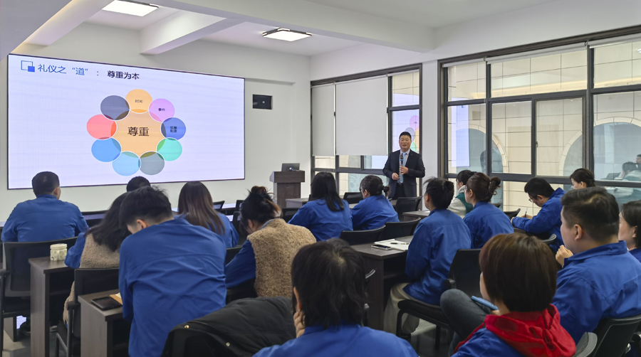 為全面提升員工職業(yè)素養(yǎng)、夯實企業(yè)品牌建設(shè)基礎(chǔ)。2月22日,鑫諾特材組織開展了”商務(wù)禮儀”專題培訓(xùn)。本次培訓(xùn)特邀寶雞文理學(xué)院經(jīng)濟(jì)管理學(xué)院曹克老師現(xiàn)場授課,公司中層管理人員及機(jī)關(guān)部分人員參加。